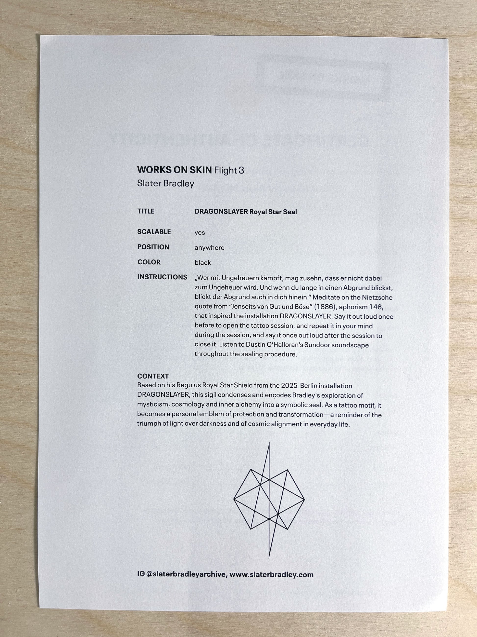 Slater Bradley (born 1975, San Francisco) is an American conceptual and cross-disciplinary artist renowned for his evocative work in video, photography, painting, and installation. Bradley’s practice foregrounds themes of myth, pop culture, and spirituality, most notably through his acclaimed “Doppelgänger Trilogy,” which interrogates identity and collective memory by substituting himself with an actor to reflect on celebrity and loss. He earned a BA from UCLA in 1998 and launched his international career at only 22; in 2005, he became the youngest artist to have a solo show at the Solomon R. Guggenheim Museum, New York. Bradley’s more recent work explores sacred geometry, astrological motifs, and immersive installations that invite meditative reflection on ancient and contemporary consciousness. Described as “something of a cult hero” for his genre-defying, spiritual approach, he lives and works in Berlin, Germany, and his art has been featured in major institutions including MoMA, Whitney, and Aspen Art Museum.